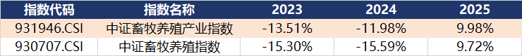 养殖ETF汇添富(159172)标的指数为中证畜牧养殖产业指数,该指数发布日期为2023年7月28日,年度涨跌幅(2023-2026)分别为-13.51%、-11.98%、9.98%。