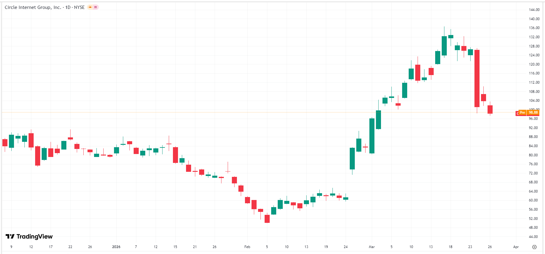 长期以来,Circle 的核心竞争力是“透明与合规”,但是随着 Tether 补齐审计短板,Circle将失去最大优势,市场份额可能被进一步挤压,目前股价已经做出反应。昨日,Circle 股价再次大跌5%,跌破100美元关口,报98.85美元。