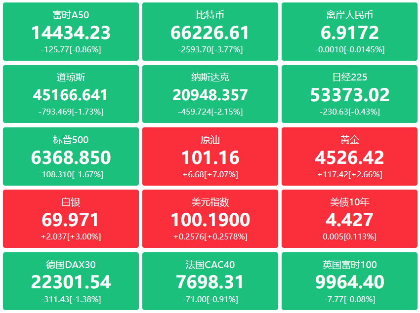 现货黄金涨2.62%,报4495.55美元;现货白银涨2.45%,报69.764美元。