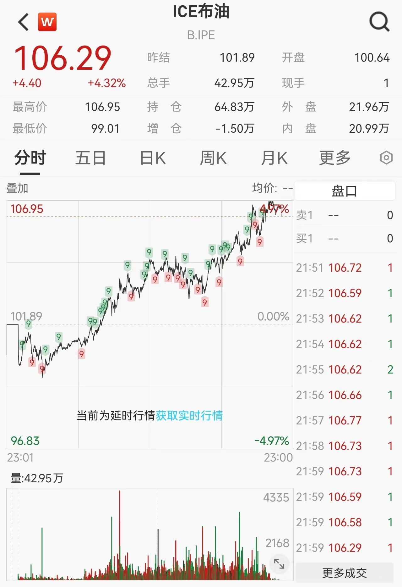 地缘风险直接推升原油供应中断忧虑。WTI原油期货当日收盘暴涨7.09%,报101.18美元/桶,布伦特原油亦突破106美元,双双升至2022年7月以来最高点。霍尔木兹海峡的潜在封锁风险迫使交易员重新定价全球能源供需格局。美国银行大宗商品业务主管指出:“现实逐渐取代新闻标题的影响,油价呈现缓慢但持续的上行走势。”