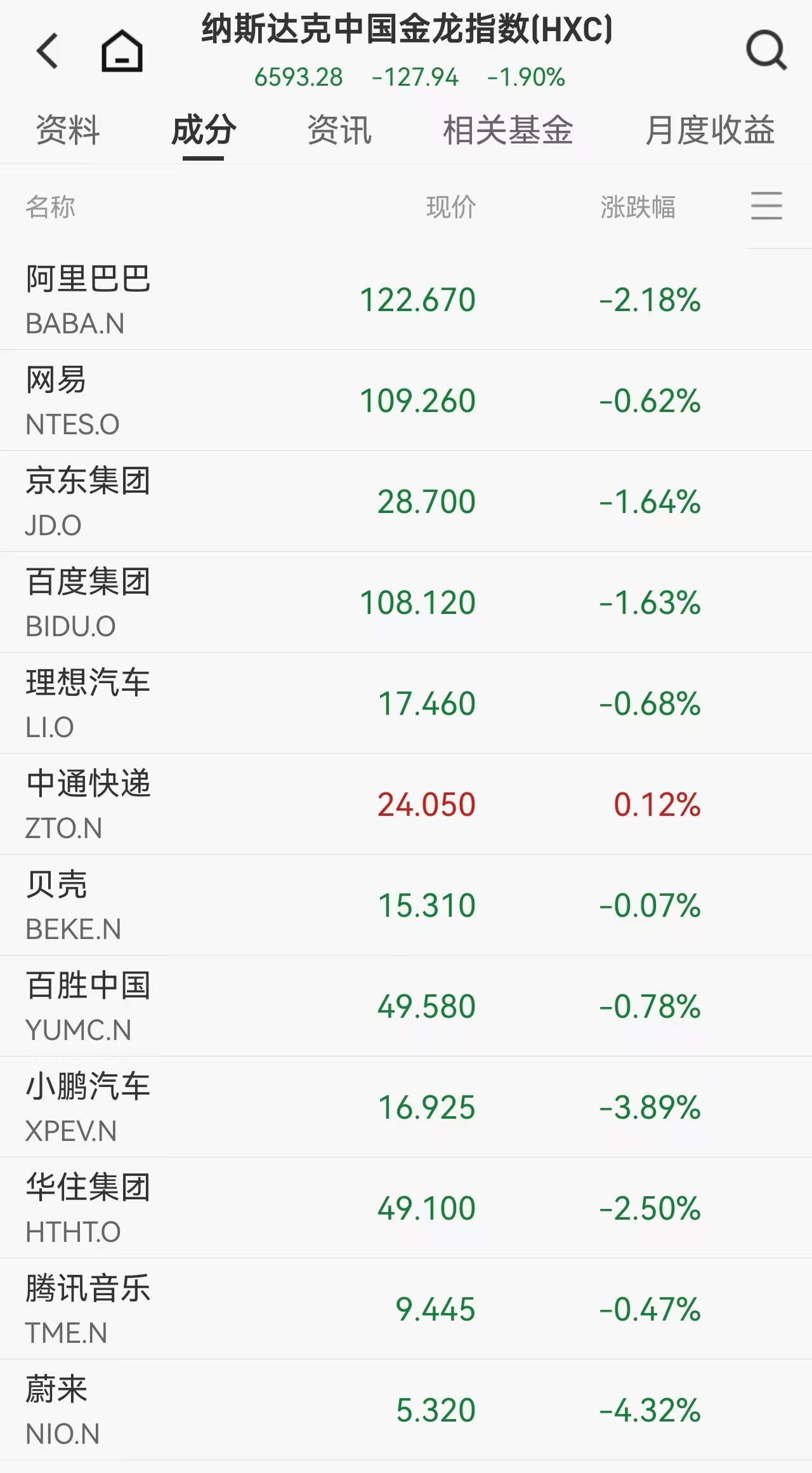 热门中概股同样未能幸免,多数随大盘下行。纳斯达克中国金龙指数当日收跌1.9%,其中蔚来跌超4%,小鹏汽车、霸王茶姬、携程网、爱奇艺跌超3%,阿里巴巴、京东、百度等龙头标的也均有不同程度下跌。