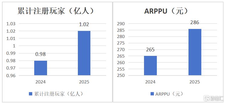 2025年,公司累计注册玩家同比增长4%至1.02亿人,ARPPU(每付费用户平均收入)达到285.6元,同比涨幅近8%。注册用户稳步增长的同时,核心付费用户的消费意愿与付费能力持续提升,足以说明公司的内容更新、运营活动精准贴合目标用户需求,成功激活核心用户群体的价值。