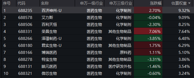 【科创创新药ETF汇添富(589120)标的指数前十大成分股】