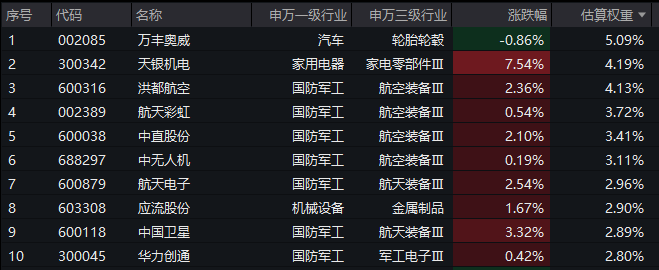 【航空ETF汇添富(159257)标的指数前十大成分股】