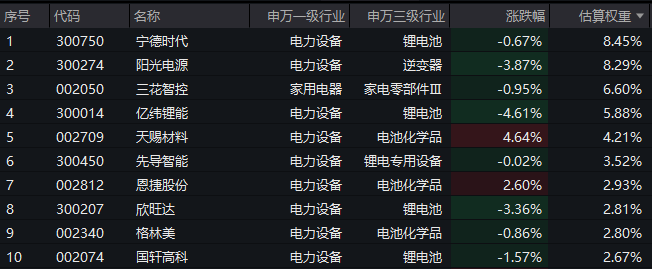 【电池ETF汇添富(159796)标的指数前十大成分股】