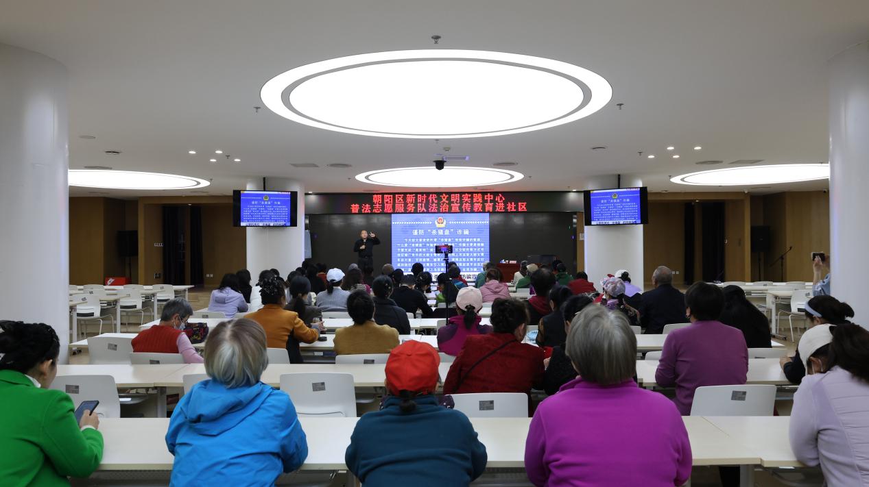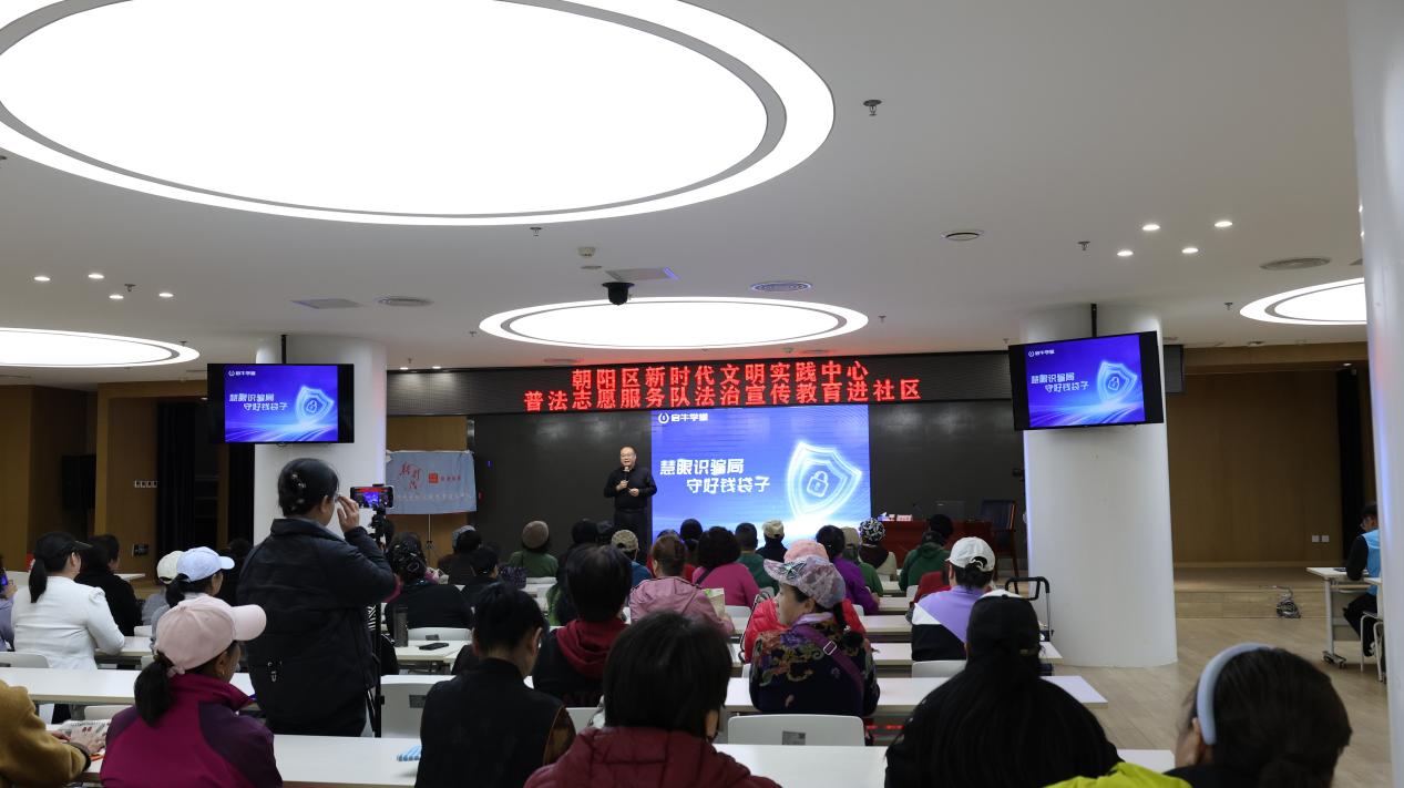 3月27日,朝阳区特色普法品牌“普法就‘宪’在”走进金盏地区,举办《慧眼识骗局 守好钱袋子》金融反诈专题普法讲座。本次活动特邀启牛学堂副院长梁永甫担任主讲,通过贴近生活、内容实用的反诈知识宣传,提高辖区群众识骗防骗能力,守护好自己的“钱袋子”。