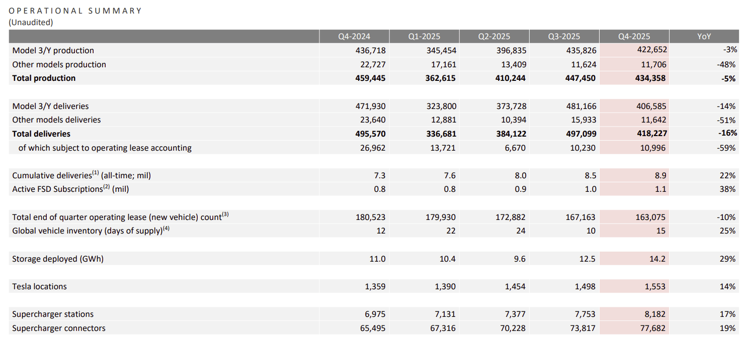 然而,看空阵营的逻辑同样严密。汽车业务作为特斯拉目前的唯一盈利引擎,正面临明显的增长压力。2025年全年,特斯拉交付量为163万台,同比下降8.5%,这是公司历史上首次连续两年销量下滑,且降幅创历史纪录。在全球市场份额上,特斯拉正面临中国车企对比亚迪(BYD)的强力冲击,后者2025年纯电销量已达225.7万台。尤其在欧洲市场,特斯拉新车挂牌量录得28%的显著跌幅,反映出品牌竞争力的稀释。