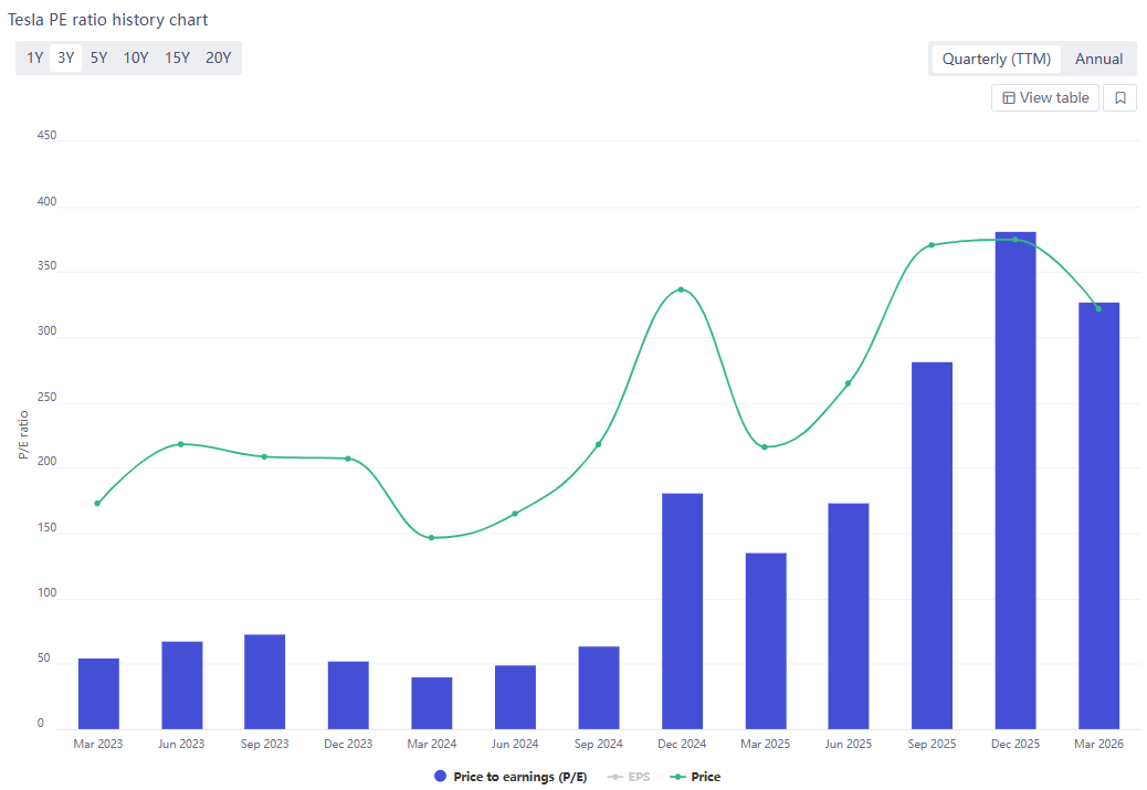 在宏观层面,特斯拉股价对利率的敏感度已显著超过对能源价格的敏感度。尽管地缘冲突导致原油价格一度冲破150美元,但在高通胀背景下,美联储维持3.5%至3.75%的基准利率,使得市场对降息的预期不断延后。对于特斯拉这种拥有300至370倍远期市盈率(P/E)的高估值成长股,高利率环境会产生剧烈的估值压制。