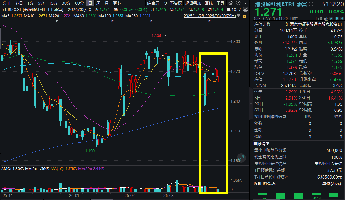 3、规模与流动性领先。港股通红利ETF汇添富(513820)规模超41亿元。规模大、流动性好,投资者交易更丝滑。(数据来源:IFIND,截止2025.02.27)