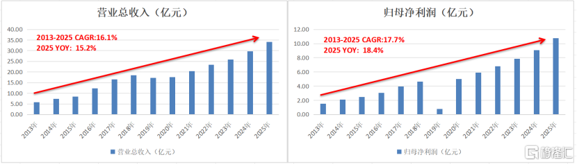 2025年,公司实现营业收入34.17亿元,同比增长15.2%,归母净利润10.78亿元,同比增长18.4%,净利润加速增长,盈利能力进一步增强。