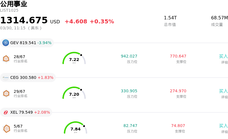 Ge Vernova Inc (GEV) 盘中下跌3.94%, 所属行业公用事业上涨0.35% ,公司涨幅跑输行业涨幅,行业成交额前三股票 Ge Vernova Inc (GEV) 下跌 3.94%;Constellation Energy Corp (CEG) 上涨 1.83%;埃克西尔能源 (XEL) 上涨 2.08%。