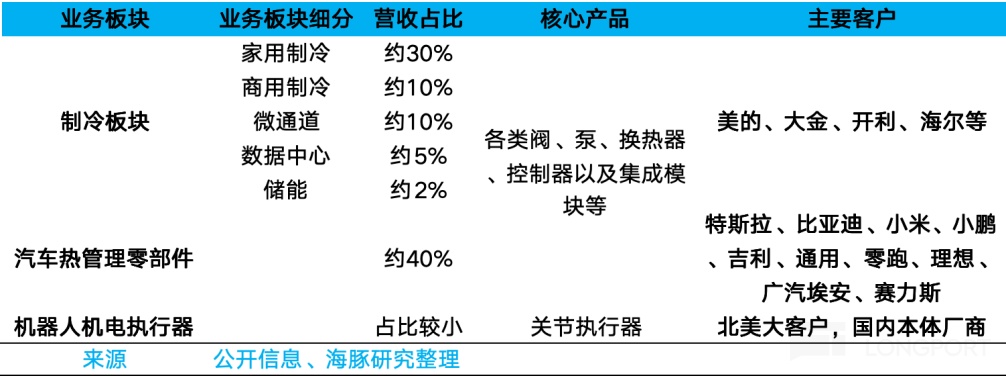 三花智控业务主要分两大板块:制冷零部件和汽车零部件。