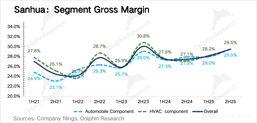 不过从同比增速上来看,三花汽车业务多元化进度其实不错:25 年第一大客户的占比已经从 24 年的 12.6% 下降到接近 11%。