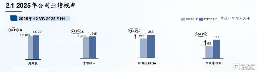 但进入下半年,局面发生根本性扭转:取卵周期数从上半年的1.38万个提升至1.42万个,环比增长3.1%;管理收入从15.10亿元提升至15.68亿元,环比增长3.8%。更关键的是利润端,经调EBITDA从2.25亿元提升至2.66亿元,环比增长18.2%;经调净利润从0.82亿元提升至1.27亿元,环比大增54.9%。