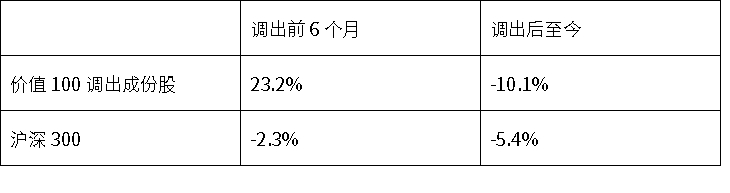 价值100指数调出成份股收益对比
