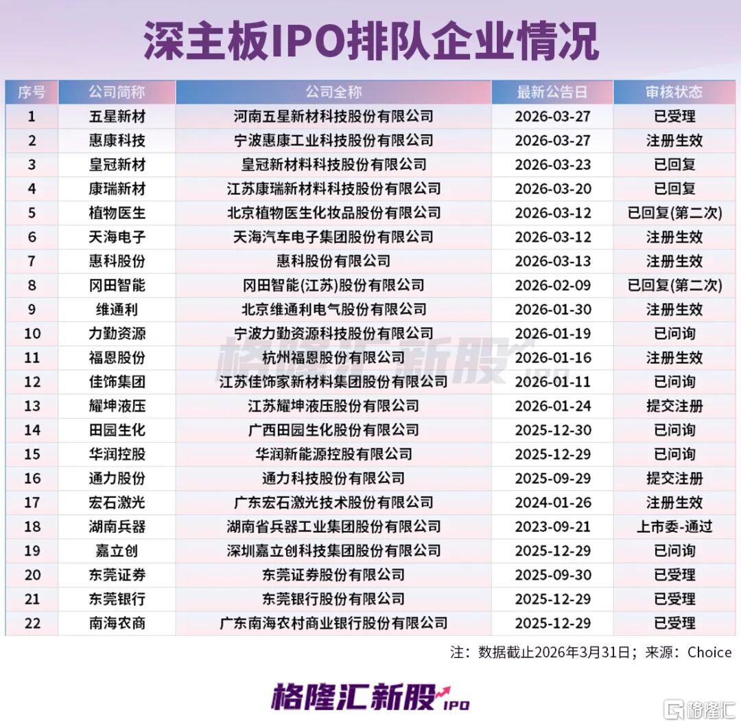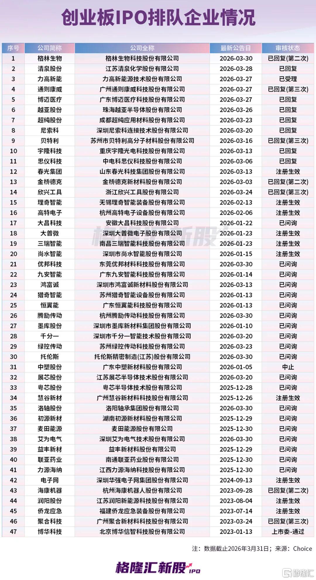 从已经正式递交招股书的企业来看,Choice数据显示,截止2026年3月31日,剔除IPO终止、审核不通过、不予注册的企业之外,A股注册制下在审企业为337家。其中,沪主板、深主板均为22家,科创板、创业板分别为48家、47加,北交所则高达198家。