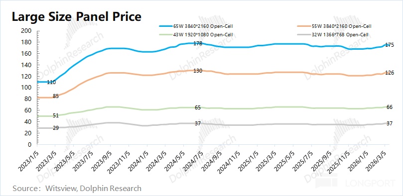 从 2026 年 2 月以来最面板价格再次出现提升的迹象,但不可忽视的是,受国补收紧、存储涨价的影响,电视/电脑等相关需求还是相对偏弱的。如果价格的回升仍主要来自于企业进行产能调节的影响,是难以持续的。