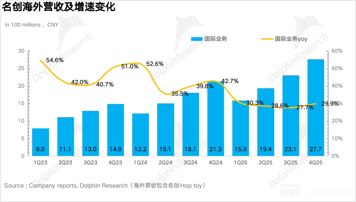 总体上,四季度名创海外实现营收 27.7 亿元,同比增长 30%,环比有所提速。
