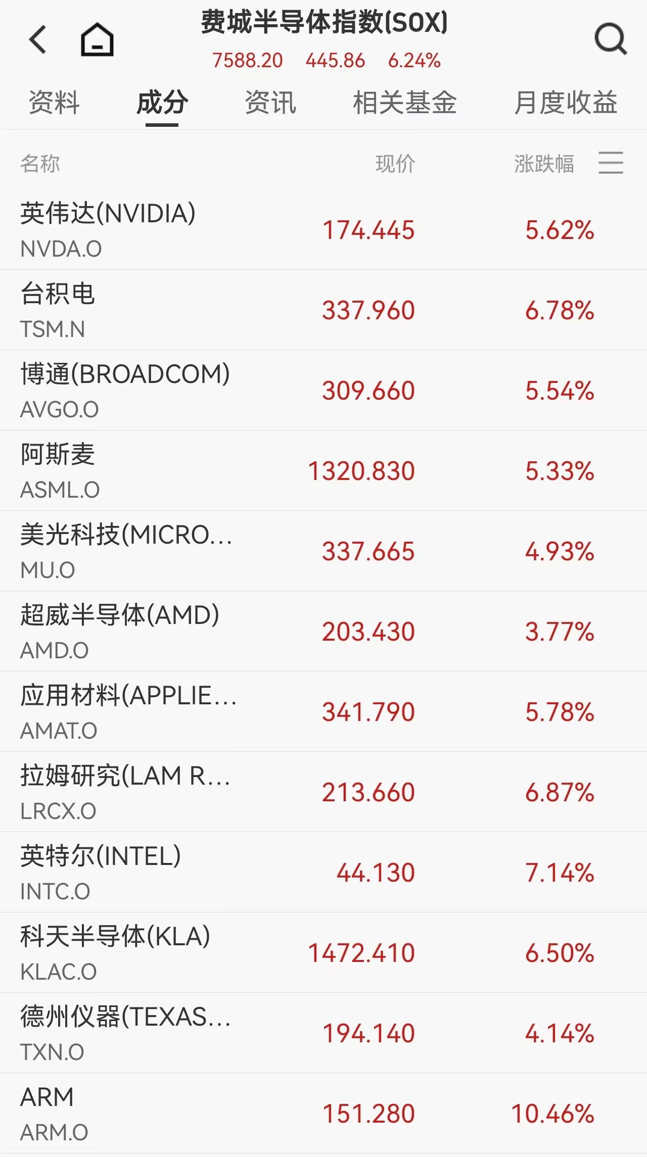 芯片股更是集体爆发,费城半导体指数涨幅超过6%,迈威尔科技因获得英伟达20亿美元投资并建立战略合作而大涨近13%,ARM涨超10%,台积电涨逾6.7%。