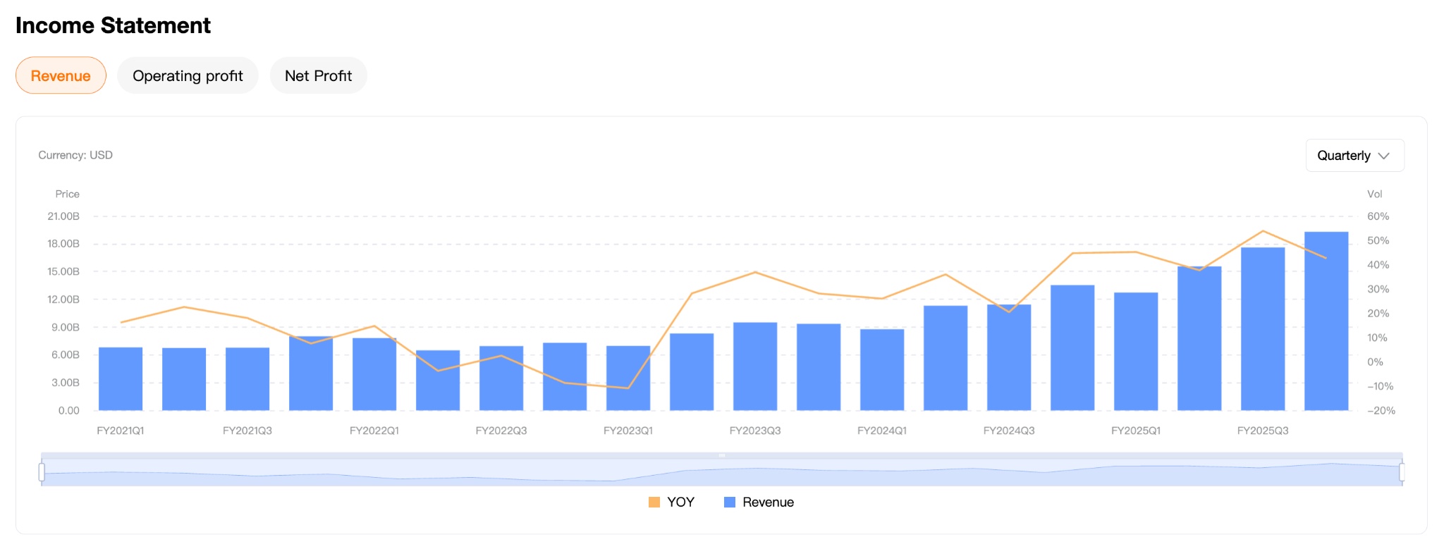 从其收入来看,自2023年以来,礼来收入持续受市场扩大影响持续增加,其收入的大幅增长显示其业务的强劲,并且目前尚未看到其增长放缓的迹象。