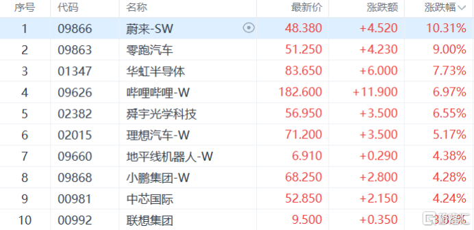 大型科技股、大金融股等权重助力大市回升,其中百度涨近4%,阿里巴巴涨超3%,腾讯涨2.6%,小米涨约1%。