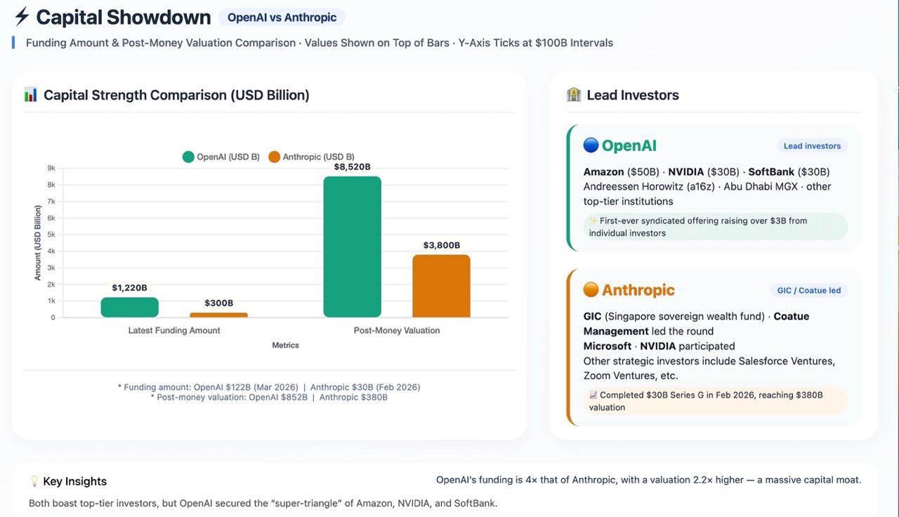 将OpenAI的融资与Anthropic对比,更能看清资本格局: