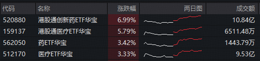 港股医药弹力出众,100%创新药研发标的——港股通创新药ETF华宝(520880)、港股医疗核心资产——港股通医疗ETF华宝(159137)收涨6.99%、5.79%,时隔仅2个交易日,双双再创历史最大单日涨幅!