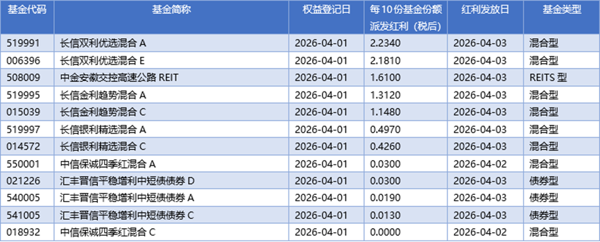 四、04月01日基金分红一览