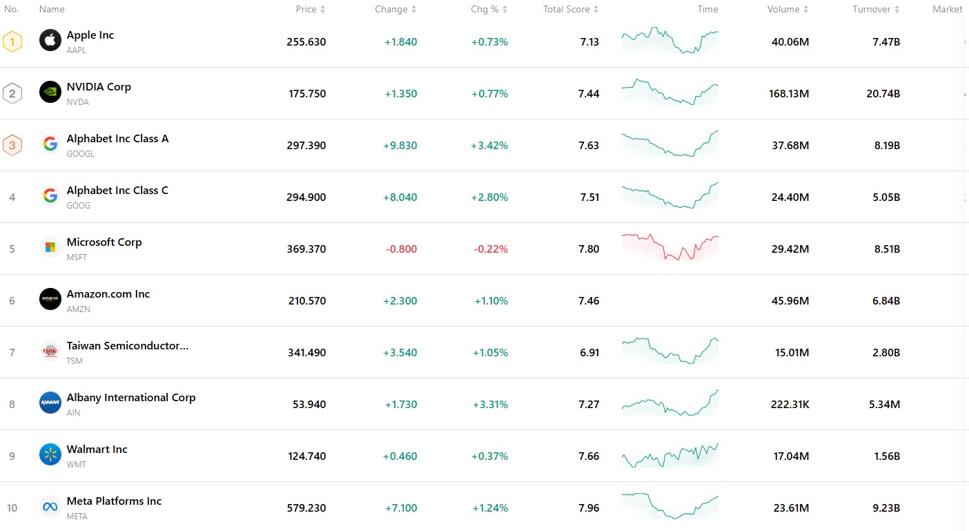 下图列出了当前市场上交易最活跃的十只股票。凭借庞大的成交量和极高的流动性,这些标的已成为追踪全球市场动态的关键基准。