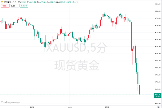贵金属持续下跌,现货黄金失守4700美元/盎司,日内跌幅超2%。现货白银日内跌幅超3%,现报72.54美元/盎司。纽约期银跌破73美元/盎司,日内跌4.13%。