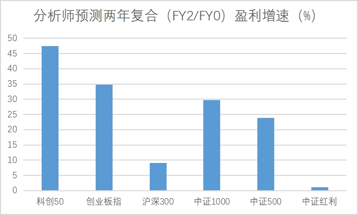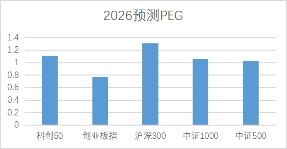 图:2026预测PEG科创50相较其他宽基指数并不高