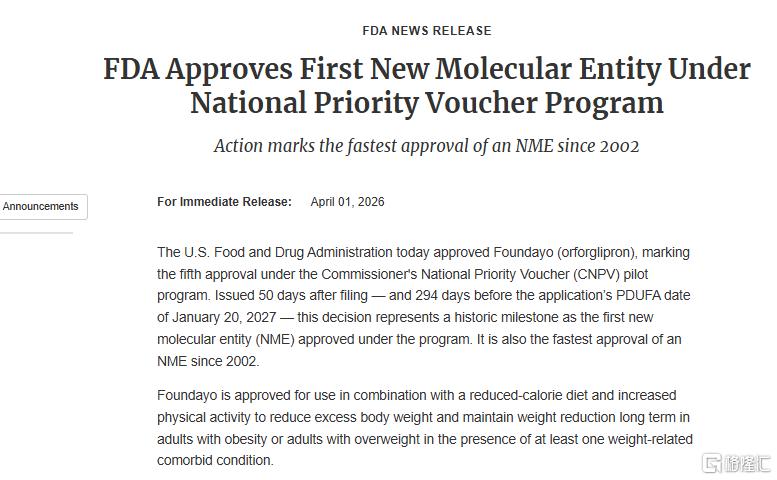 4月的第一天,礼来口服GLP-1减肥药Foundayo获FDA批准上市。
