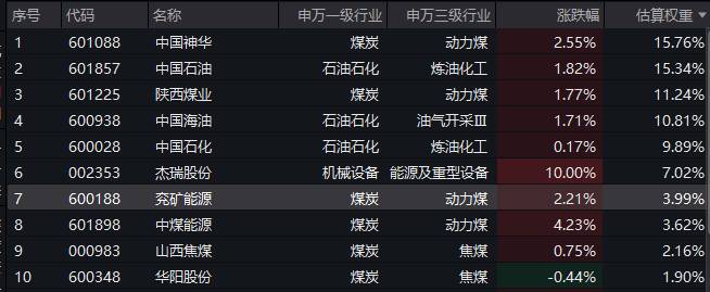 【能源ETF汇添富(159309)标的指数前十大成分股】