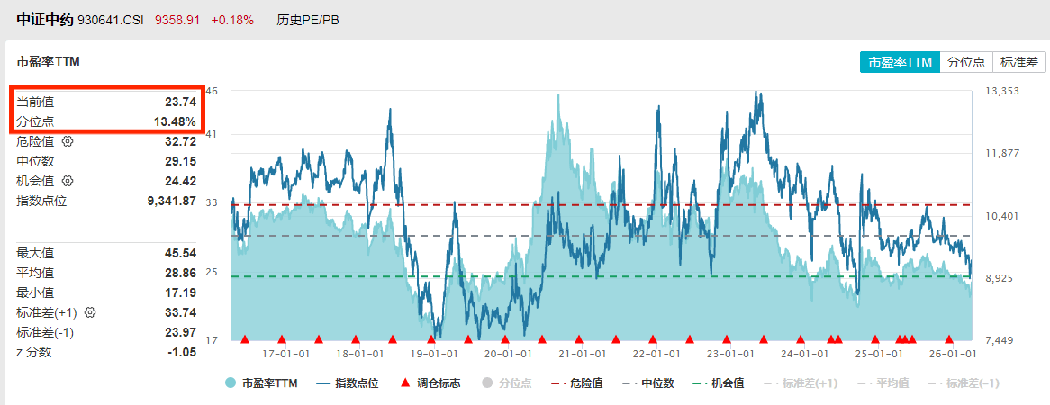 估值上看,中药ETF汇添富(560080)所跟踪复制的中证中药指数最新市盈率(PE-TTM)为23.74倍,指数发布以来估值分位点13.48%,意味着指数市盈率已低于近10年86%的时间区间,估值性价比凸显!