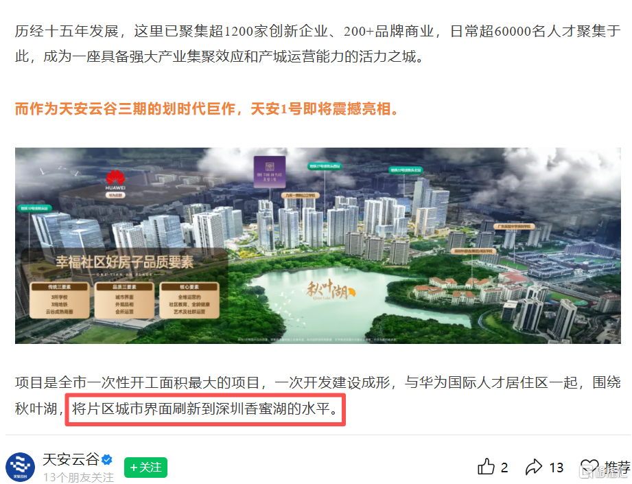 再看市场大环境,即使天安云谷里13栋的产品和配置跟得上1栋,要撑不起同样的定价,也有一定难度。