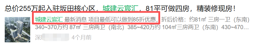 因为项目有4000套左右的回迁房,意味着整个天安云谷里都被回迁安置物业包围着,将有可能影响整个坂田北的市场预期。
