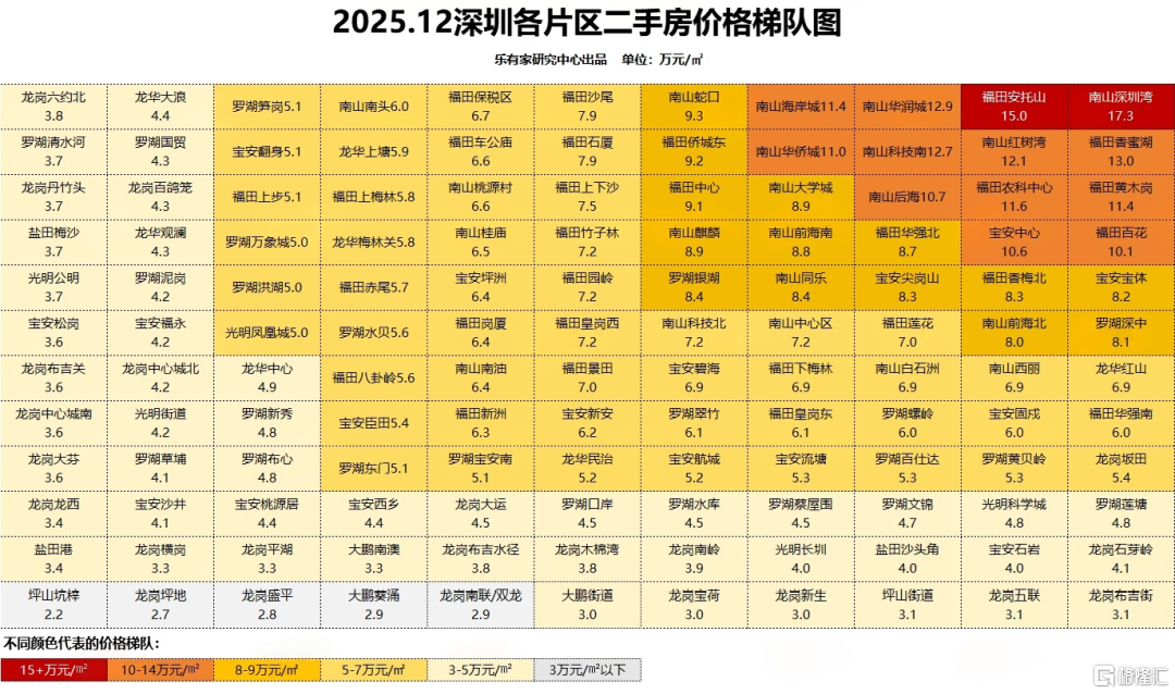 2025年底坂田片区成交均价仅约5.4万/㎡,较2020年9—12月高峰调整幅度约15.63%。
