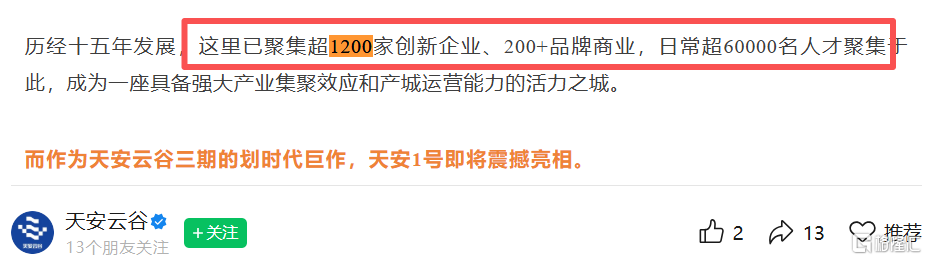 过去十几年,天安云谷已经形成聚集效应,一二期已经聚集了超1200家创新企业、200 品牌商业,日常6万 人,直接带动了坂田的产业升级。