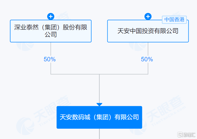 而根据天眼查,天安数码城又有50%股权被天安中国投资有限公司持有。
