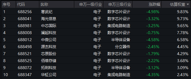 【科创芯片ETF汇添富(588750)标的指数前十大成分股】