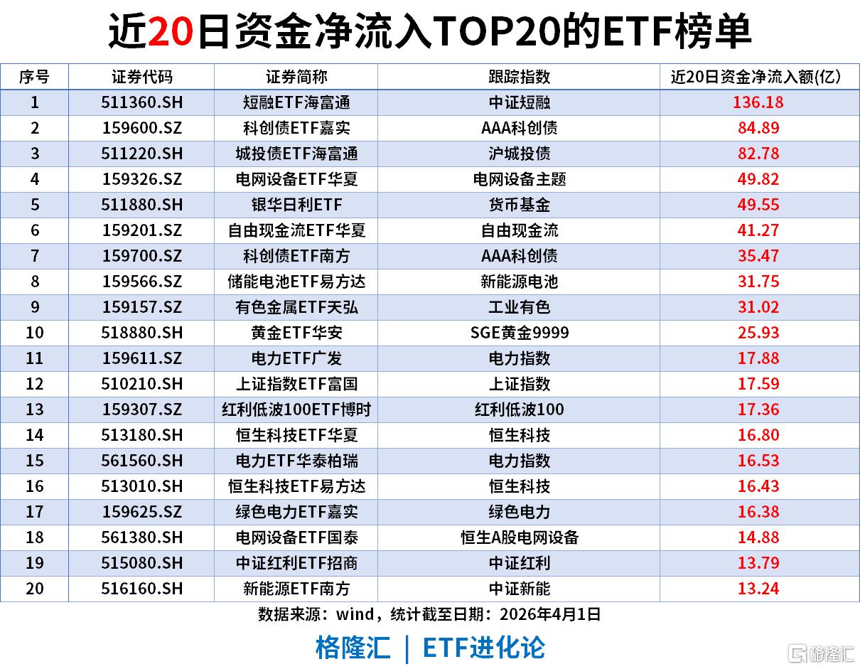 近20日资金净流入(截至2026-04-01)