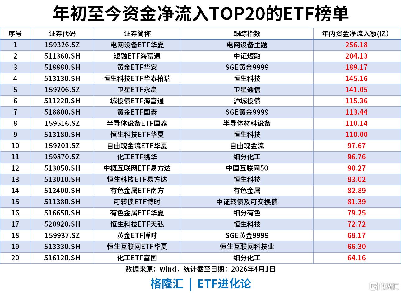 黄金与成长:黄金ETF华安以28.39亿净流入位列第四,避险属性资产获持续配置;港股通创新药、消费龙头、创业板等成长与消费板块获6-10亿资金流入,中期配置兼顾防御与赛道机会。