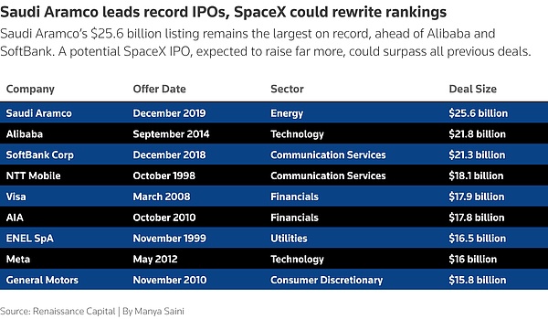 SpaceX的上市可能成为IPO市场的风向标:如果市场反响热烈,则表明人们期待已久的大型交易复苏终于开始。