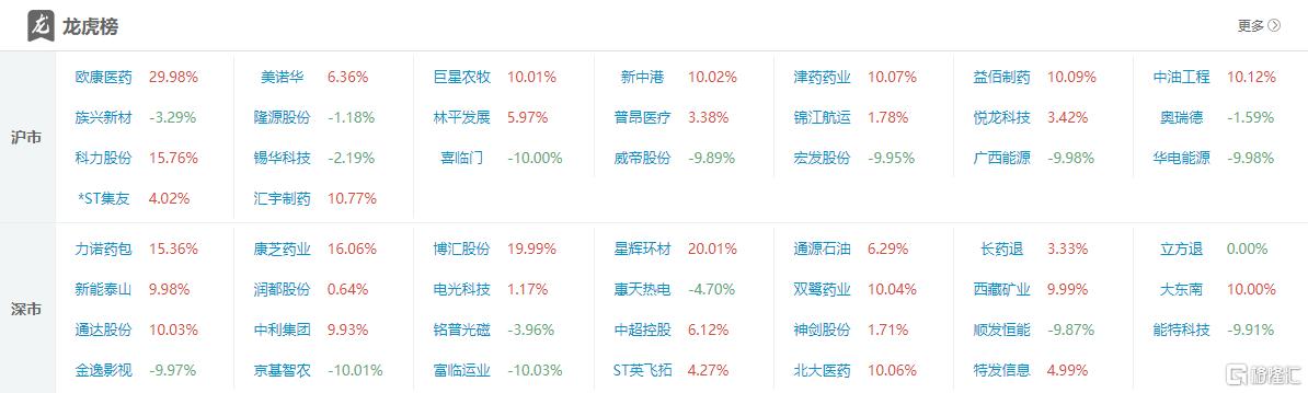 高位股方面,中利集团10天6板,新能泰山8天6板,津药药业5连板,双鹭药业7天4板,大东南6天4板,通达股份、新中港、星辉环材3连板。