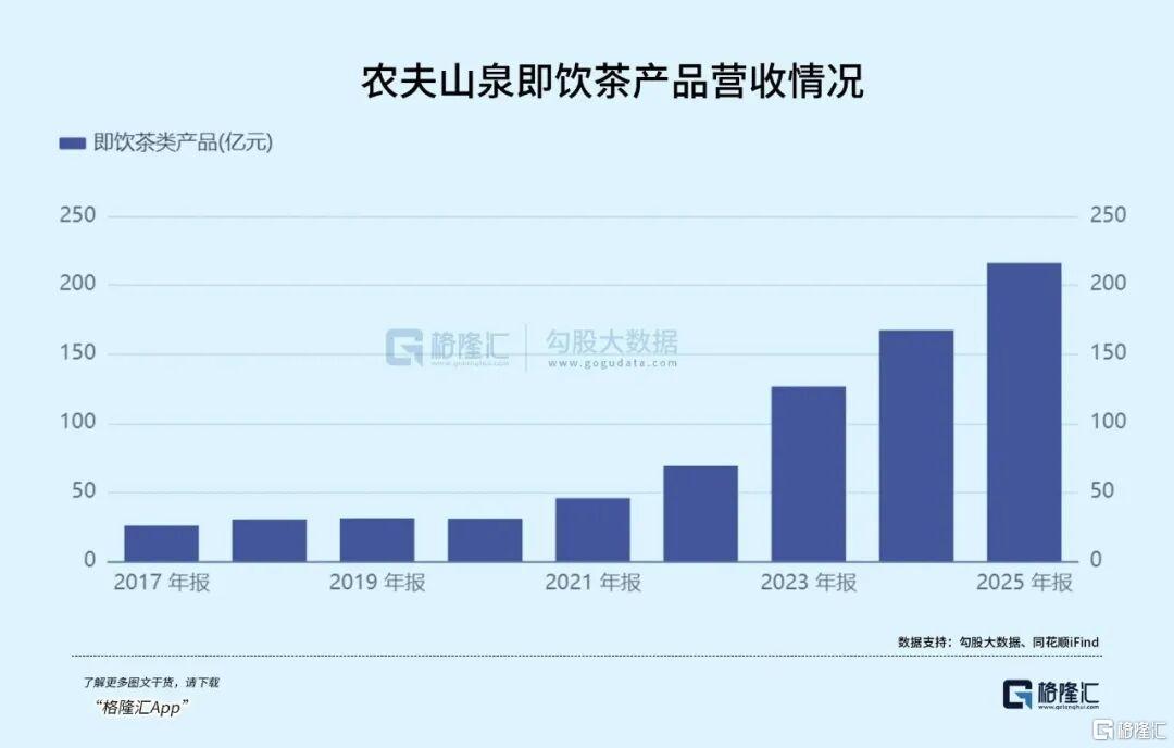 但2025年,农夫山泉的包装饮用水业务虽然依旧稳健,收入187.09亿元,同比增长17.3%,但其占总收入的比例已从37.2%下滑至35.6%。