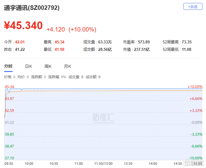 通宇通讯:今日涨停,偏离值11.49%,换手率18.75%,成交额28.56亿。龙虎榜数据显示,1机构净买入5701.94万元,T王净卖出2923万元。
