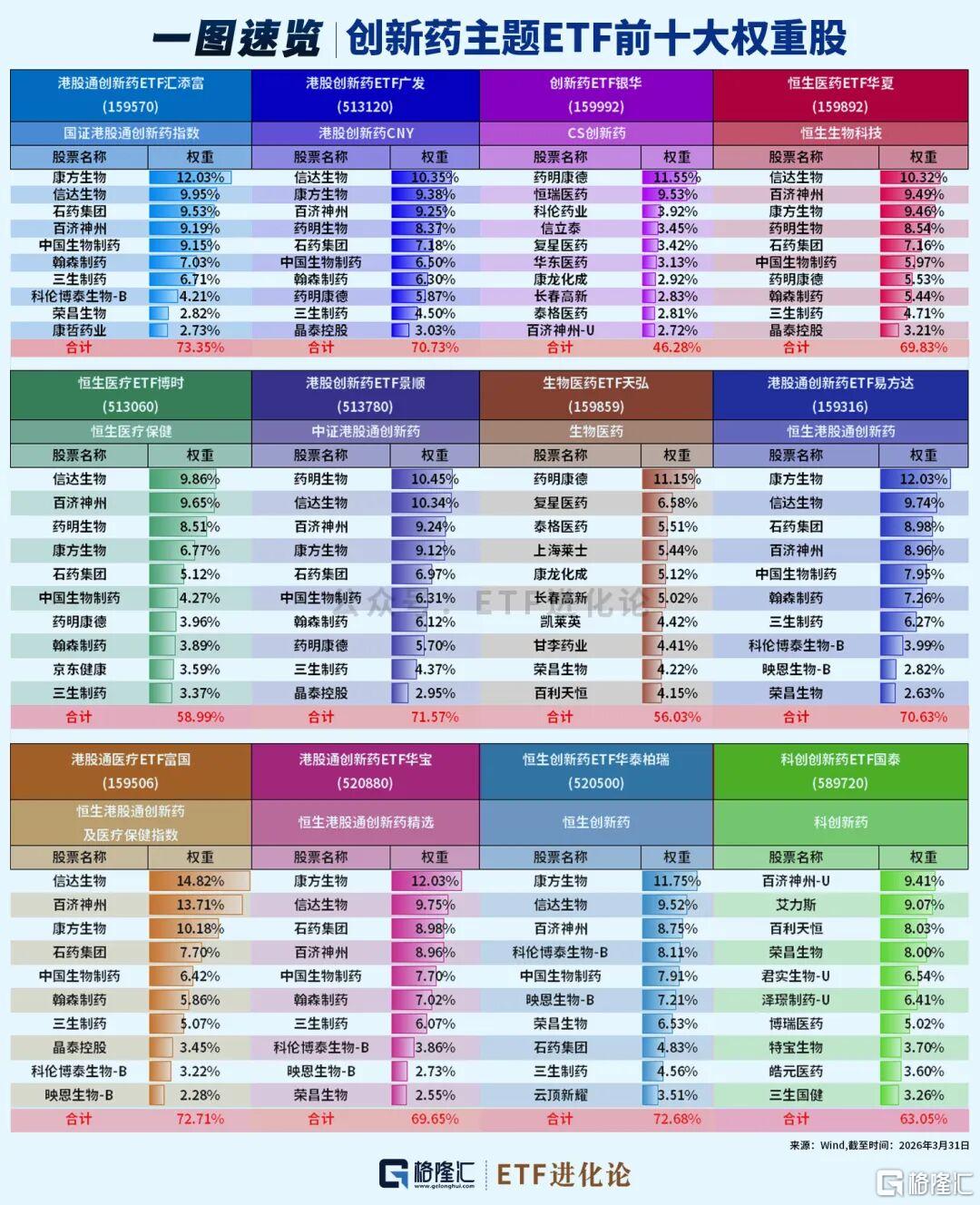 目前规模超百亿的创新药主题ETF有三只:港股通创新药ETF汇添富(159570)、港股创新药ETF广发(513120)和创新药ETF银华(159992)。