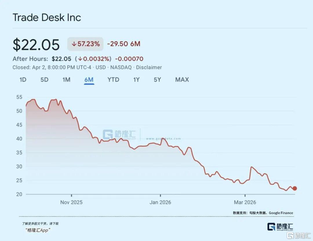 The Trade Desk 这家公司,去年还有不少人把它当成广告科技里少见的“又有成长、又有故事”的标的;可到了过去两个季度,市场的耐心明显不一样了,股票持续下挫,6个月跌幅超57%。坏消息当然不是突然冒出来的,但几件事连在一起之后,味道就变了。那在童话不再续写之后,The Trade Desk 的烂日子到底到头没有?