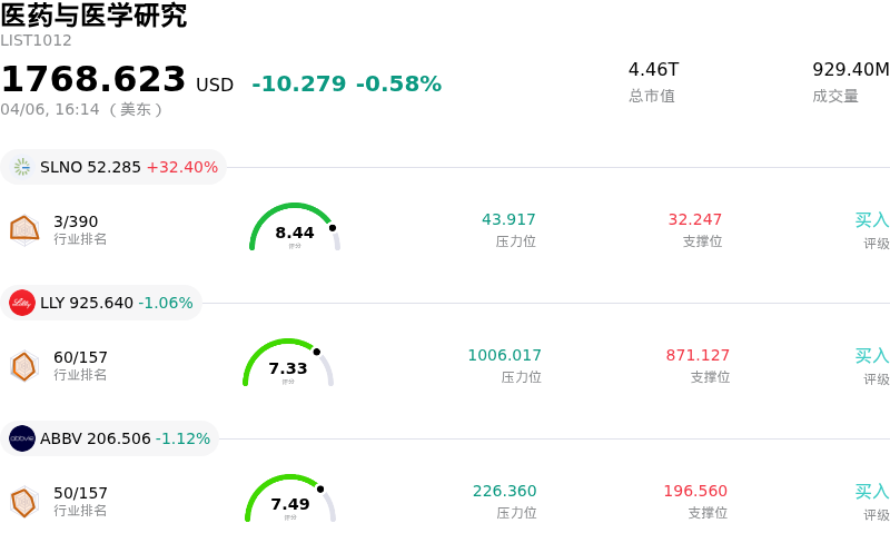 麦克森 (MCK) 收盘下跌3.20%, 所属行业医药与医学研究下跌0.58% ,公司涨幅跑输行业涨幅,行业成交额前三股票 Soleno Therapeutics Inc (SLNO) 上涨 32.40%;礼来 (LLY) 下跌 1.06%;艾伯维 (ABBV) 下跌 1.12%。