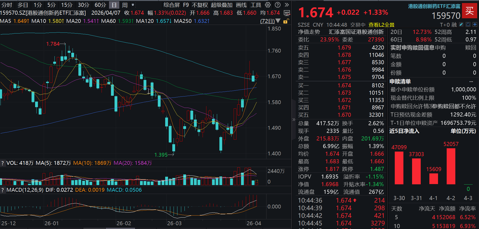 国际局势动荡,创新药兼顾进攻和防御属性?港股通创新药ETF汇添富(159570)涨超1%,近5日净流入超15亿元!BD+学术会议催化不断!